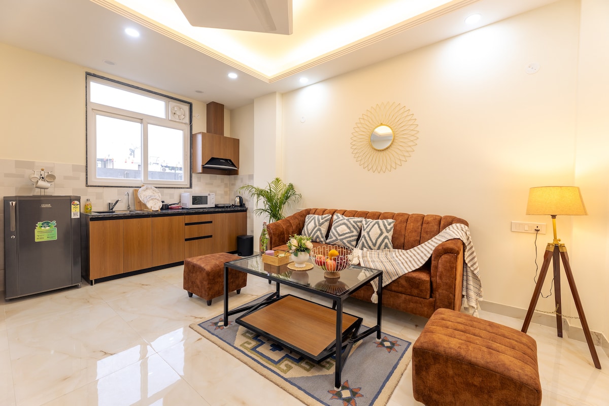 Lujo| 1BHK totalmente independiente | Camino al campo de golf