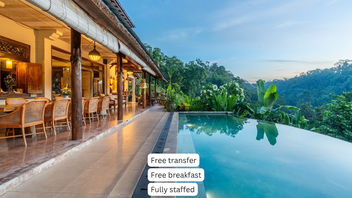 Villa Shamballa es un refugio espiritual y tranquilo que ofrece una experiencia de villa privada íntima e indulgente. Este romántico escondite mágicamente encaramado sobre un barranco a lo largo del místico río Wos es el lugar ideal para una pareja, especialmente para su luna de miel, aniversario y cumpleaños. Oferta especial solo para luna de miel y cumpleaños (el mismo mes de tu estadía). Reservas hasta el 1 de noviembre de 2025. Cena romántica de cortesía de 3 platos junto a la piscina a la luz de las velas - mínimo "3 noches" de estadía
