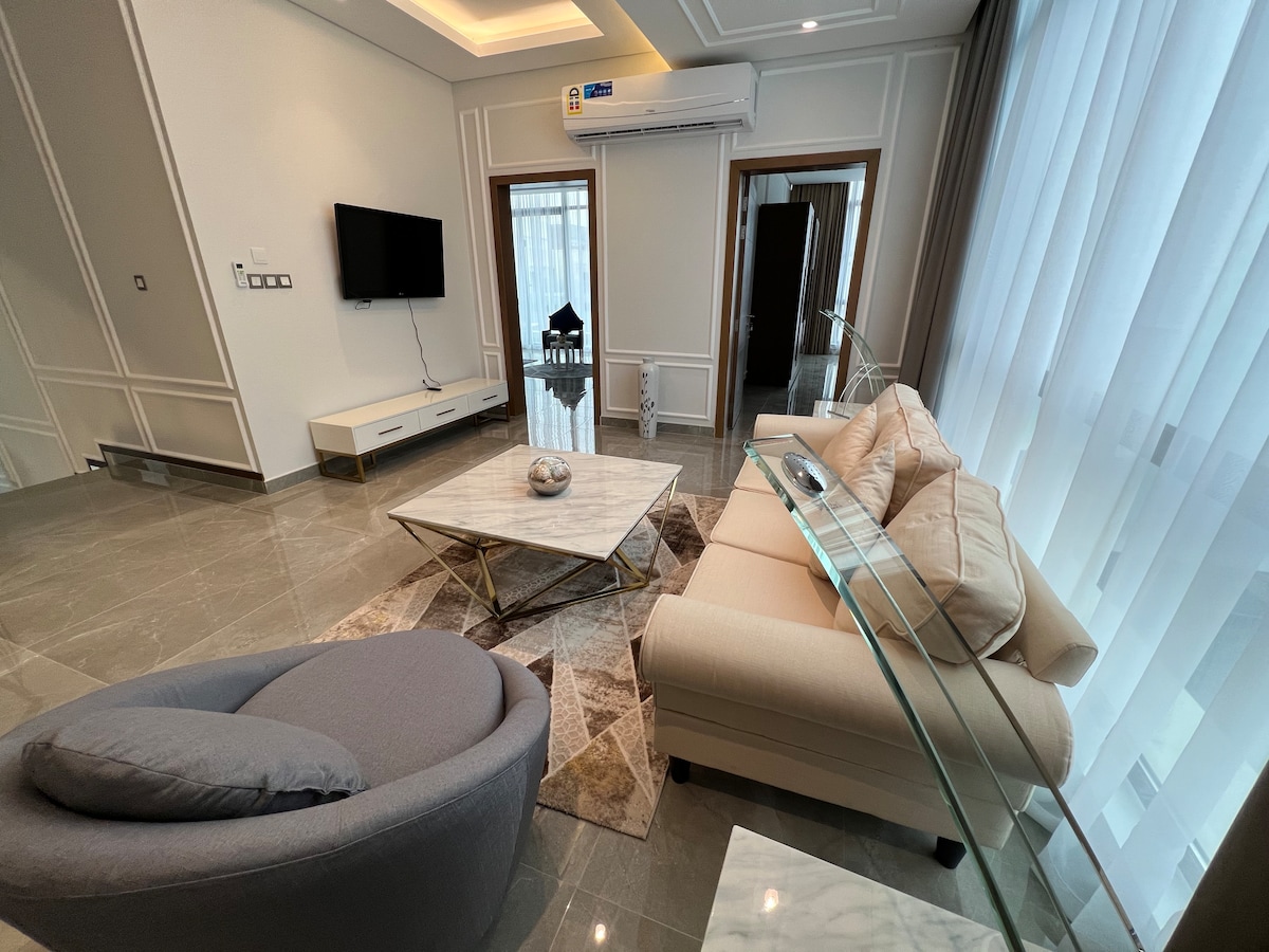 Relájate en esta escapada única y tranquila. Un apartamento de lujo cerca de las principales carreteras y a 10 minutos del centro comercial Seef y del centro de la ciudad. Tres dormitorios para dormir seis. Cocina algo en una cocina de tamaño completo o relájate con un televisor de65pulgadas con canales de streaming. Tendrás tu propio acceso a través del ascensor. Tu anfitrión se hospeda en el mismo edificio y responderá rápidamente a cualquier solicitud.