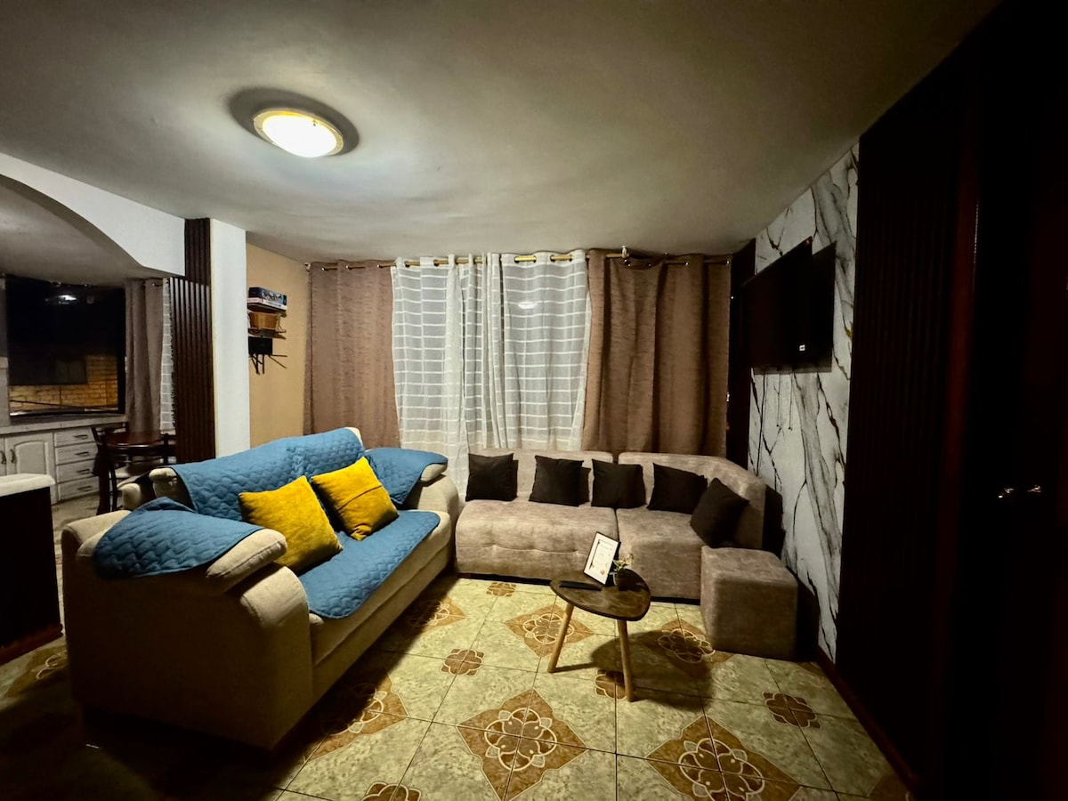 Disfruta de una estadía cómoda y auténtica en este departamento moderno, acogedor y perfectamente ubicado en Ulba, Baños de Agua Santa. Ideal para viajeros y parejas que buscan descanso, privacidad y una experiencia local diferente. El espacio cuenta con todas las comodidades necesarias para una estancia corta o larga: dormitorio confortable, sala iluminada, cocina equipada y un ambiente cálido que te hará sentir como en casa.