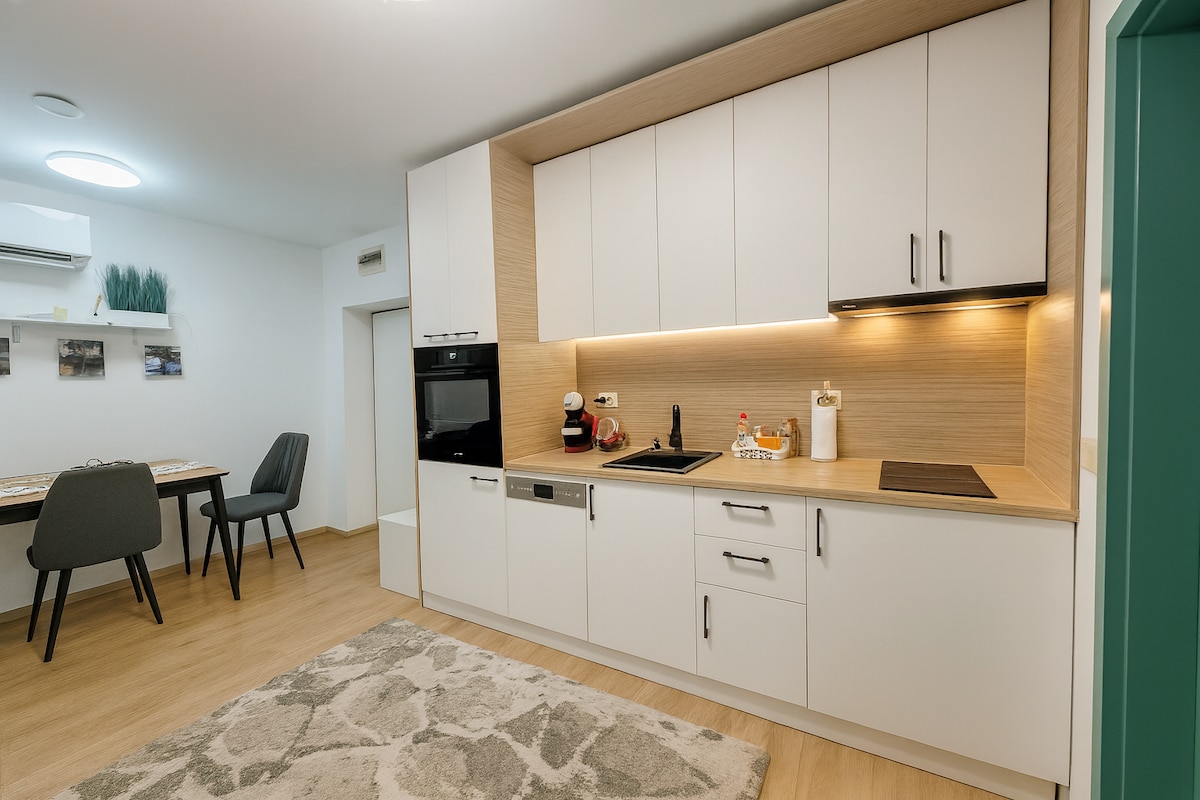 Apartamento elegantemente amueblado, 45 metros cuadrados con dos habitaciones separadas. Se encuentra a 200 m de la primera estación de remonte para acceder al monte. Cerca del centro de la ciudad, con buena infraestructura. Existe la posibilidad de estacionar un auto. Consta de una habitación grande con zona de cocina y dormitorio independiente. Calefacción con aire acondicionado. Baño grande con tina. Hay un SPA cerca, justo al otro lado de la calle . Nearbay tiene tiendas, restaurantes y alquiler de esquí.