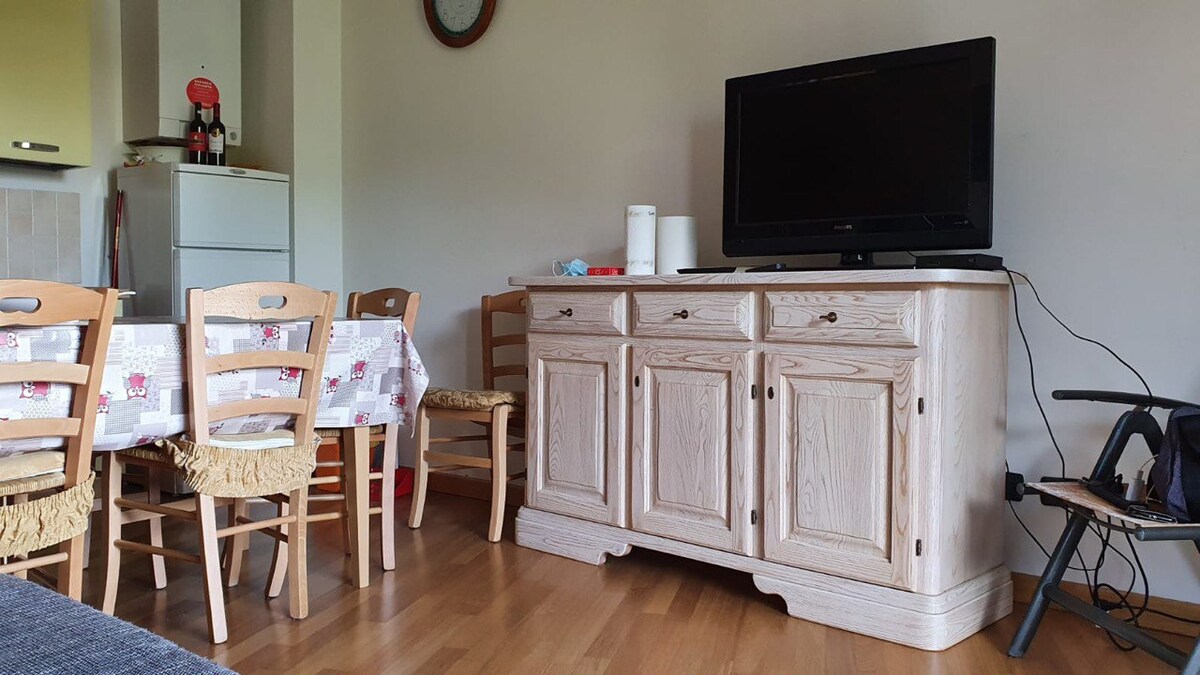 Accogliente appartamento in zona silenziosa, a 3 minuti in auto dalla piazza e dall'impianto sciistico "Selletta". L'edificio si trova al termine di strada privata, che consente il parcheggio gratuito, dalla quale sono anche accessibili percorsi trekking. Lo spazio si suddivide in una camera matrimoniale, due camere con letto a castello, un bagno, cucina e ampio salotto doppio, equipaggiato con un divano letto. Al check-in: asciugamani grandi e piccoli, legna, generi di base (olio, sale, caffe