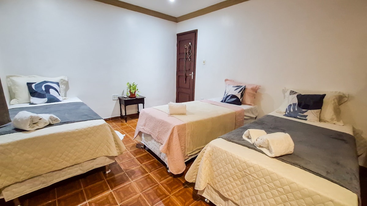 Quarto, banho quente, 3 Camas Aeroporto a 4 min