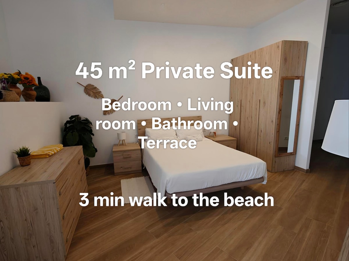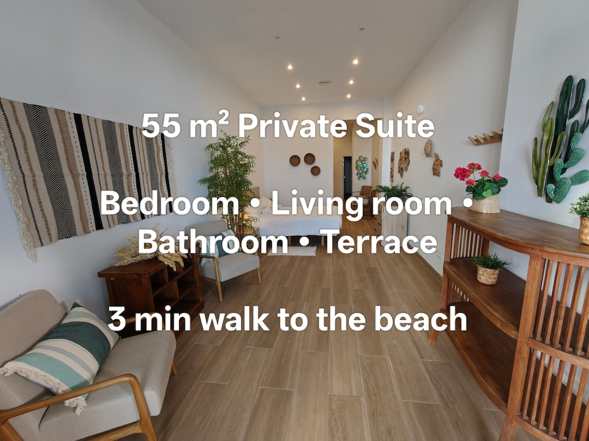¡45m2! Suite Privada a 3 minutos de la playa. 01