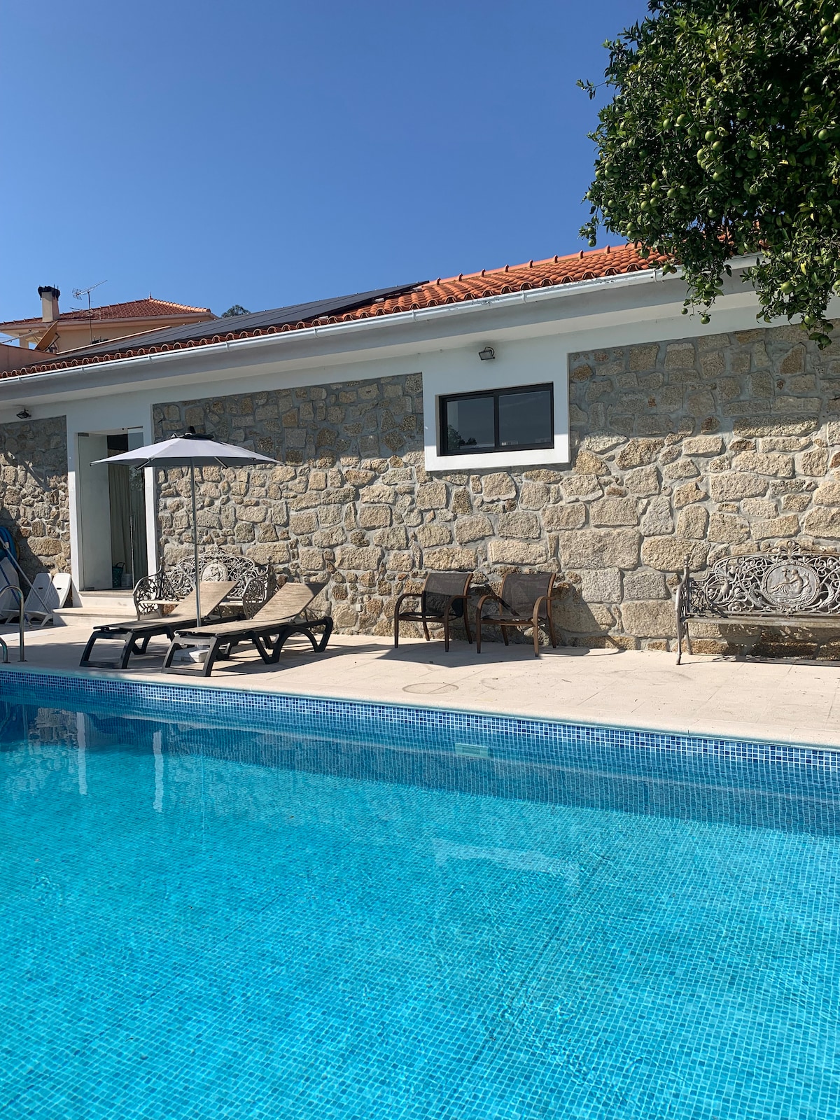 Esta casa de tres dormitorios en Viatodos, Barcelos, ofrece tranquilidad, belleza natural y una hermosa piscina compartida con la casa principal. Está totalmente amueblada con todas las comodidades necesarias para una estancia agradable. La estación de tren de Nine está a sólo 11 minutos, por lo que los huéspedes pueden viajar fácilmente y explorar los alrededores.