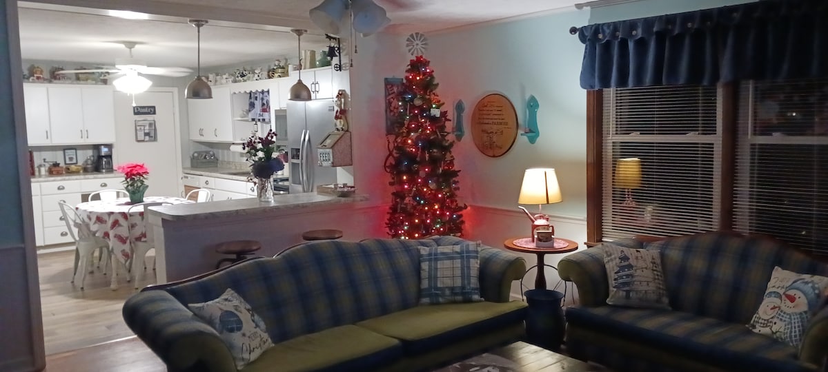 ¡Te damos la bienvenida a nuestro encantador Airbnb en Bardstown, Kentucky, la capital mundial del bourbon! Situada en el corazón del centro de la ciudad, nuestra espaciosa y bellamente decorada casa es el refugio perfecto para los entusiados del bourbon, los amantes de la historia y los amantes de la naturaleza por igual. Cuenta con tres cómodas habitaciones, cada una amueblada con ropa de cama de felpa. La sala de estar es luminosa y espaciosa, con grandes ventanales y cómodos asientos para que te relajes. La cocina totalmente equipada es perfecta para preparar deliciosas comidas.
