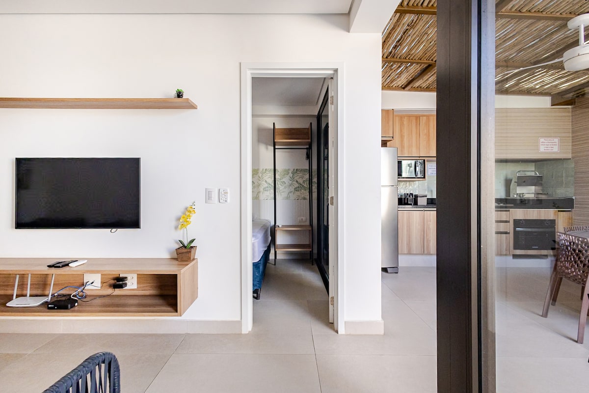 Loft com Jacuzzi, Praia no quintal vista de cinema
