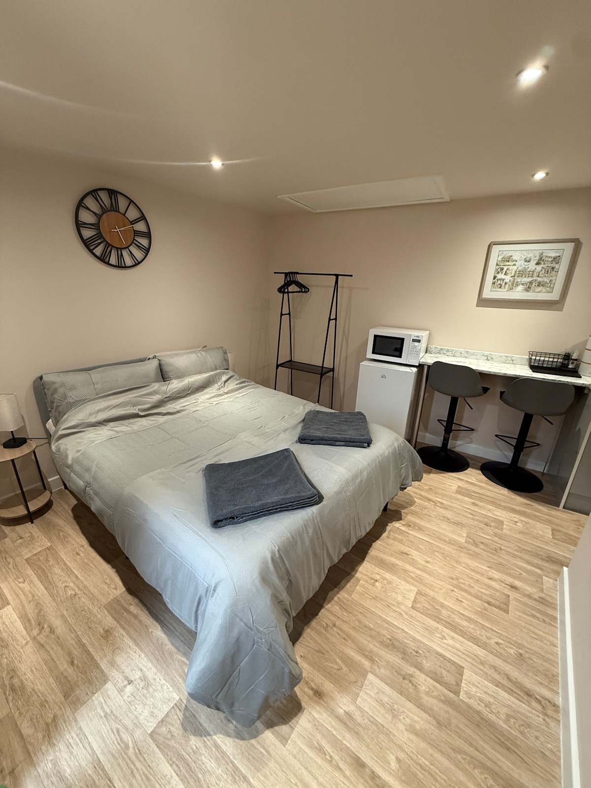 Un estudio privado con cocina americana, baño y aparcamiento cerrado seguro cerca de Stamford en Wothorpe. El apartamento está a 5-10 minutos a pie del centro de la ciudad y de la estación de tren. Burghley Park también está muy cerca y a poca distancia a pie (10-15 minutos). Con una ubicación ideal para escapadas de fin de semana y bodas y para viajeros de negocios que buscan un fácil acceso a rutas de transporte como la A1, pero cerca de la hermosa y histórica Stamford para aprovechar todo lo que ofrece.