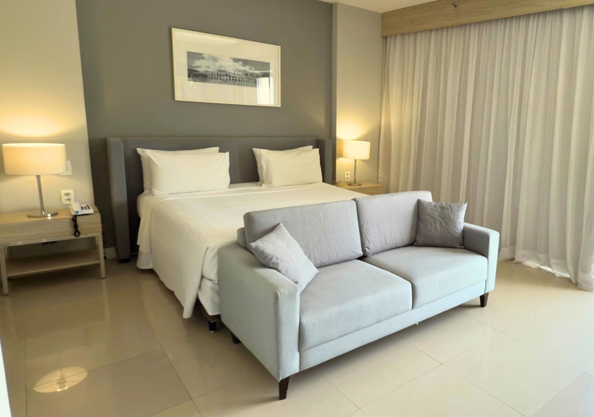 Geniet van een onvergetelijk verblijf aan het strand van Barra da Tijuca, waar luxe en rust samenkomen. Ontspan in het verwarmde zwembad met prachtig zeezicht, in een superluxe 63 m² 1-slaapkamer suite appartement, volledig uitgerust voor jouw comfort. Met dagelijkse schoonmaak, 24u-beveiliging, privéparking, fitness, sauna, jacuzzi en zwembad is dit de ideale plek om te genieten. Reis je met familie of vrienden? Bekijk ook mijn gloednieuwe luxe 2-slaapkamer suite via mijn profiel.