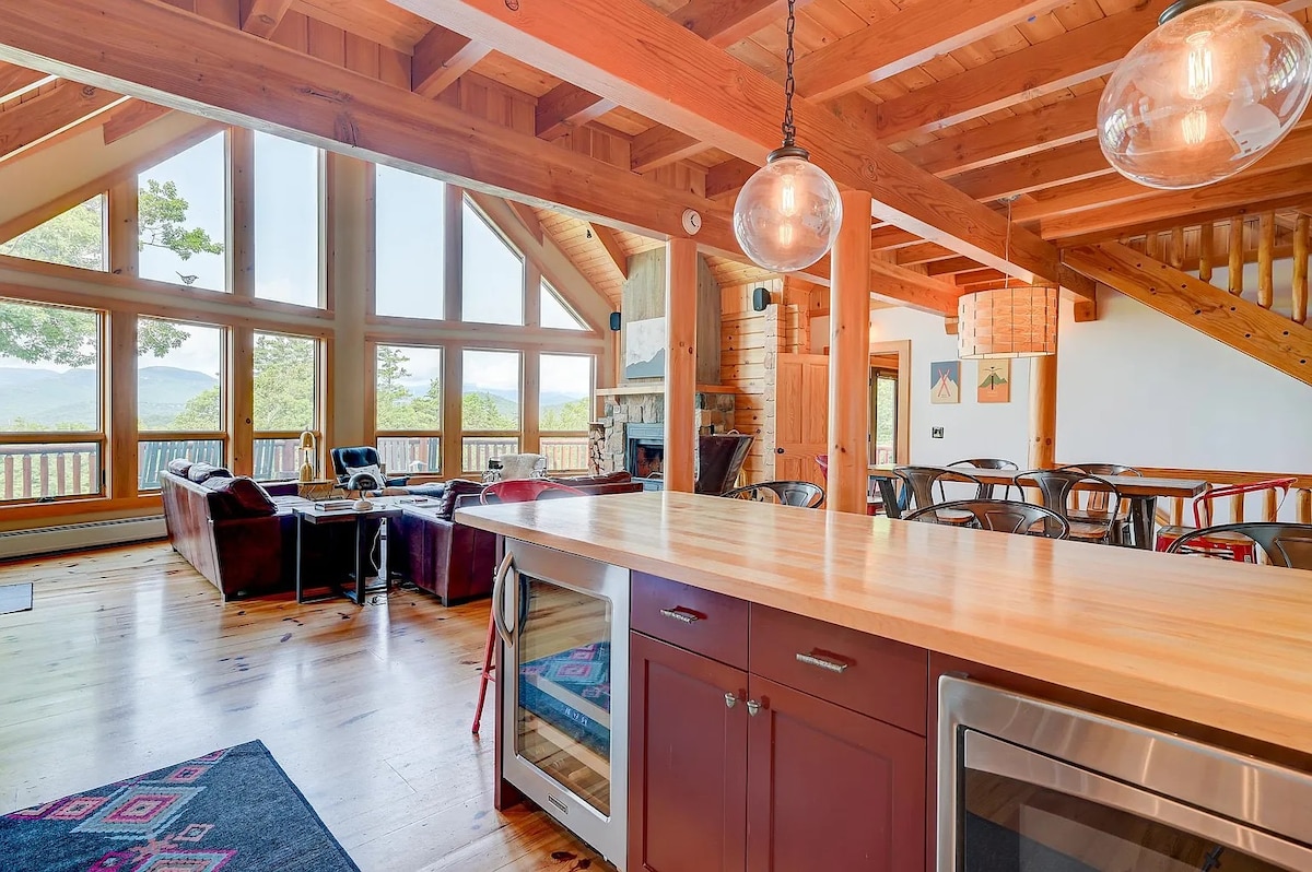 Escápate a la serenidad de nuestro nuevo retiro en la cabaña Mountain Wild View, donde la grandeza de la naturaleza se combina con la comodidad acogedora. Esta cabaña ofrece una escapada inolvidable para aquellos que buscan tranquilidad y aventura. Ya sea que estés tomando tu café de la mañana en la espaciosa terraza o acurrucándote junto a la chimenea por la noche, estarás inmerso en la belleza de la naturaleza que te rodea. Esta casa de troncos hecha a medida, con vistas sin obstáculos al monte Washington, las cordilleras Moat y Presidential, es simplemente espectacular.