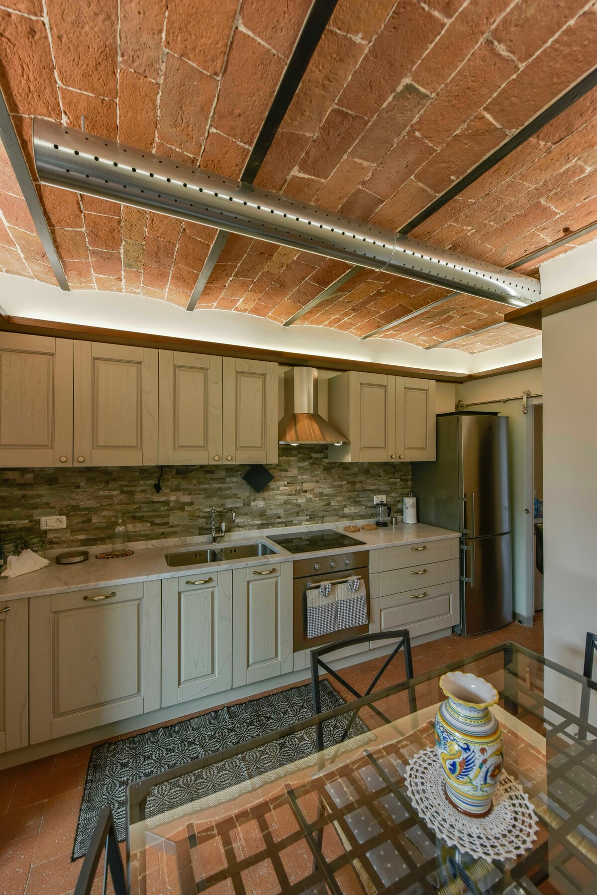 Share a bottle of Chianti on a flagstone terrace with a view of cypresses on rolling hills. This classic private villa is steeped in Old World charm—and inside it's a showpiece of contemporary design with an ultramodern kitchen and marble-tiled bathrooms. Enjoy the best of both worlds in Florence, close enough to walk to everything, far enough away to have solitude.