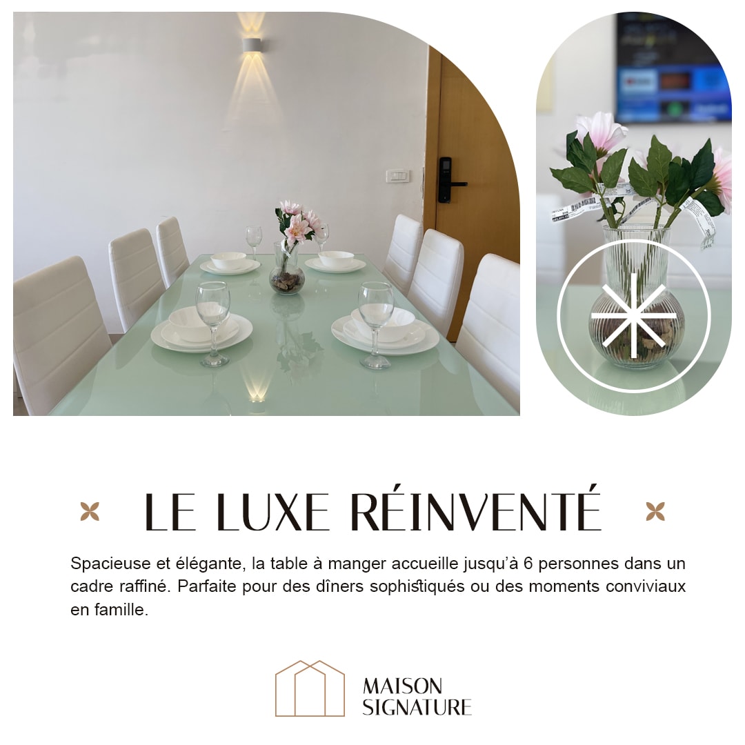 ¡Ven a vivir una experiencia memorable! Suntuoso apartamento de 2 dormitorios con camas king-size y una luminosa sala de estar con capacidad para 2 camas adicionales. Equipamiento: Fibra óptica de 100 MB Aire acondicionado centralizado 2 televisores con IPTV 2 baños con ducha Cafetera, lavadora y lavavajillas Aparcamiento en el sótano Balcón privado. Capacidad máxima: 6 personas. Situado en la tranquila zona de Mimosa, a 7 minutos a pie de la estación de tren de Kenitra y a 20 minutos de la playa de Mehdia.