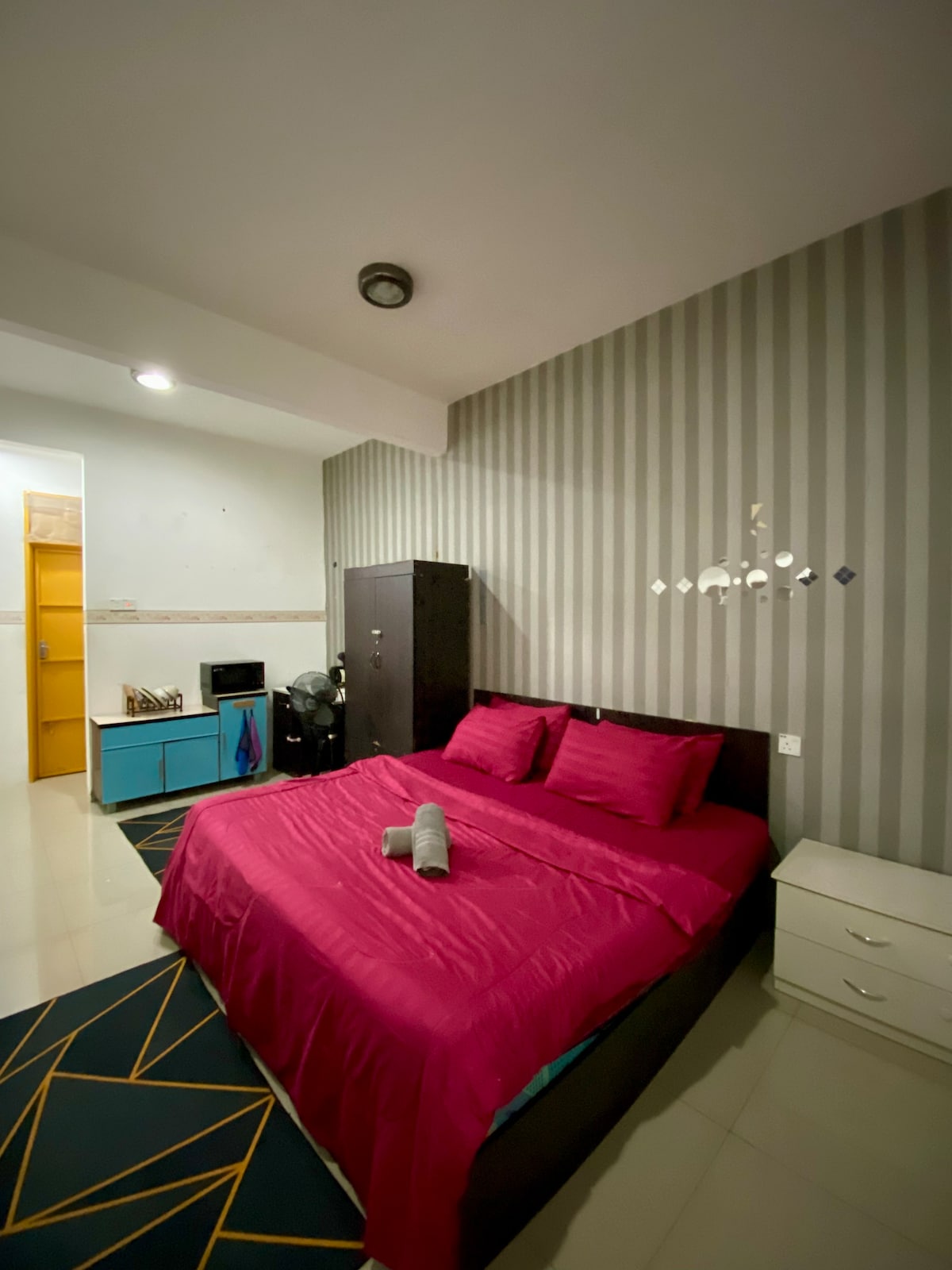Instalaciones de la habitación Aparcamiento ✅gratuito Cama ✅tamaño king (10 pulgadas) ✅Ducha ✅Nevera Calentador de✅ agua Secador de✅ pelo ✅ Plancha ✅Toalla El alojamiento está cerca de ✅Restaurante ✅Gimnasio ✅99 Speedmart ✅Lavadero de coches ✅Papelería ✅Dentista