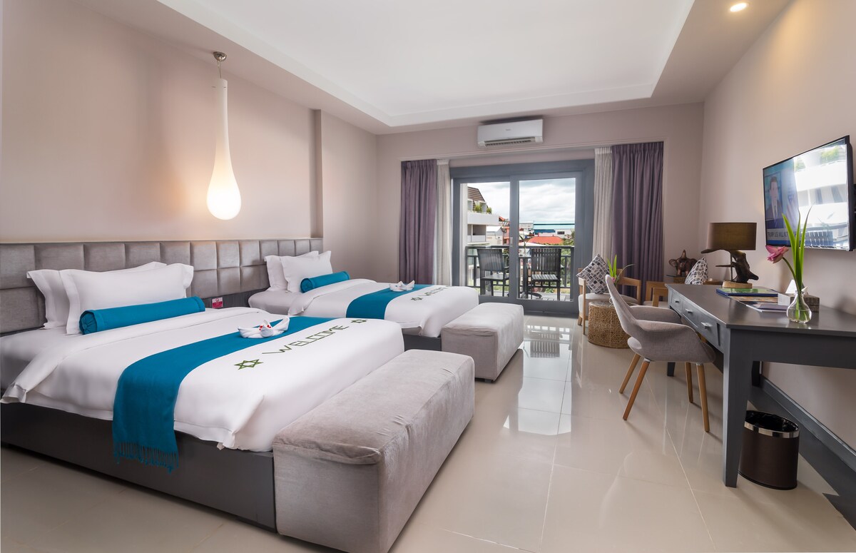 Adentrate en tu santuario moderno ubicado en el nuevo desarrollo más emblemático de Siem Reap. Este departamento de 2 dormitorios y 2 baños está diseñado para viajeros que buscan comodidad y conveniencia, combinando una vida de lujo con la vibrante energía de la capital cultural de Camboya. Ubicado a pocos minutos de las puertas de Angkor Wat y el encanto de Pub Street, tu estadía incluye acceso a una variedad inigualable de servicios: una pileta estilo resort, el gimnasio más exclusivo de Siem Reap, un espacio de coworking y una cafetería en el lugar.