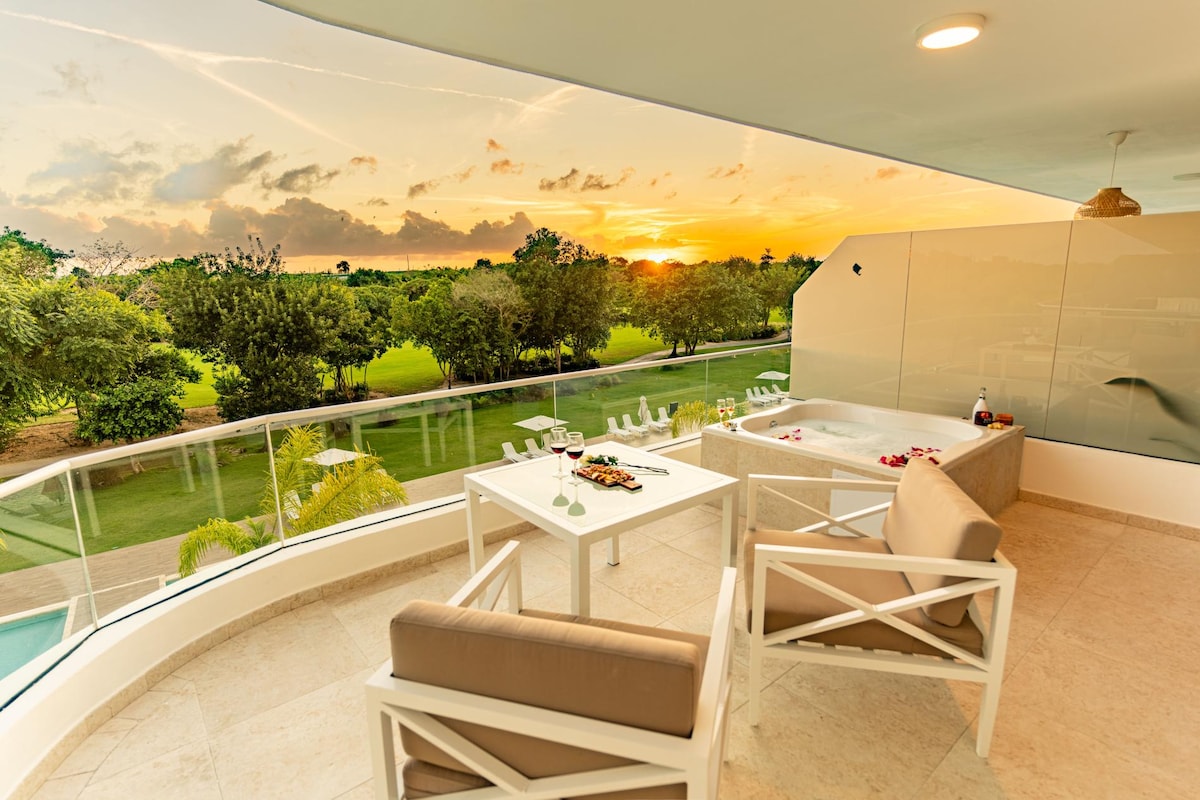 Espectacular nuevo Apartamento de lujo con piscina privada en la terraza. Un nuevo concepto de apartamentos en Punta Cana que te proporcionará confort, privacidad y seguridad para pasar tus vacaciones. Habitaciones amplias, cocina totalmente equipada, muebles de diseño, wifi de alta velocidad, check in online con la ultima tecnología. Sin duda una nueva experiencia para vivir Punta Cana de una forma diferente.