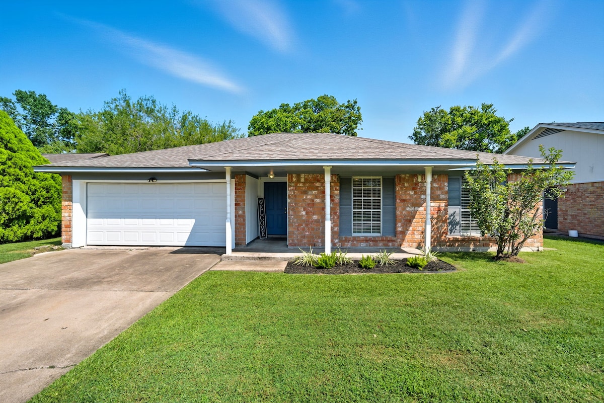 Esta gran casa recién reformada en los suburbios de Houston/Pasadena El patio trasero conduce al sendero para caminar/montar en bicicleta hasta Crenshaw Park, donde puedes caminar y ver estas increíbles puestas de sol. Sala de estar y comedor muy espaciosos. Tiene 3 dormitorios y 2 baños completos con bañera. El dormitorio principal tiene una cama tamaño king, baño privado y TV de 42 pulgadas. Cada dormitorio tiene TV de 42 pulgadas. Wifi gratuito, a pocos minutos del aeropuerto Hobby, cerca del Centro Espacial de la NASA, el paseo marítimo Kemah Boardwalk y Galveston. No se admiten mascotas ni se permite fumar.
