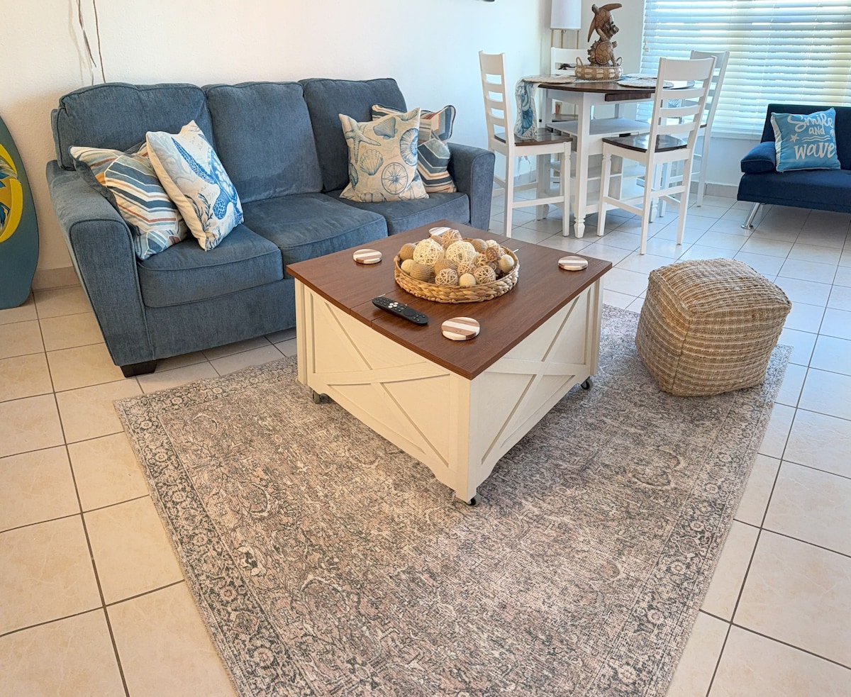 Nuestra unidad del primer piso es perfecta para parejas o familias pequeñas que quieren una escapada acogedora en la playa. Estamos a pocos pasos de la piscina resplandeciente y de todos los servicios que incluyen una cancha de baloncesto, múltiples parques infantiles, barbacoas, barbacoas, gimnasio, sala de juegos, oficina y mucho más. Muy fácil acceso desde el estacionamiento cerrado. Disfruta de la vista al patio y a poca distancia a pie de la playa durante tu estadía. El condominio está totalmente equipado con todo lo necesario para una estancia agradable. * Nota especial: las pulseras cuestan $ 35pp durante el mes de marzo*