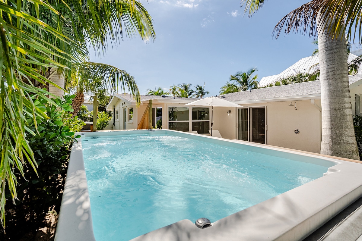 ¡Oasis frente al agua de Anna Maria! **A 5 minutos a pie de la playa, muelle privado, ¡pileta climatizada incluida!** Relajate en la pileta climatizada privada, tomá un café en el muelle o caminá hasta la playa. Este alojamiento luminoso y renovado tiene amplias salas de estar, una cocina bien equipada, televisores inteligentes, wifi rápido y camas cómodas. ¡Genial para familias o parejas! Hacé un asado junto a la pileta, cená bajo las estrellas o pescá desde el muelle. Incluye lavarropas, secarropas, equipo de playa y estacionamiento. Tu escapada tranquila y soleada te espera. ¡Reservá ahora!