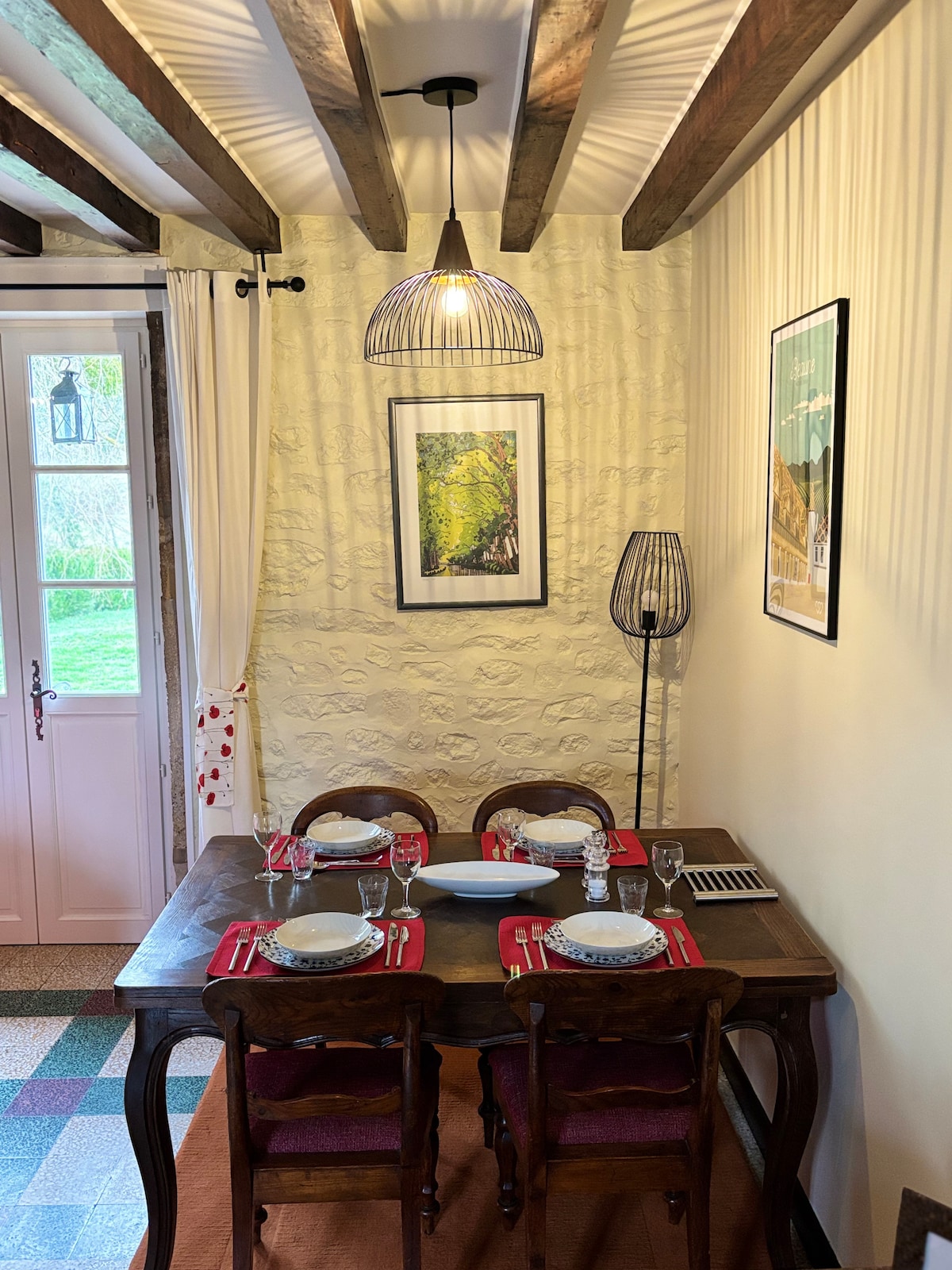La Cache es una encantadora casa de campo situada bajo los acantilados y torres de la exquisita ciudad medieval de Semur-en-Auxois. Situada junto al río Armancon, puedes sentarte, sin ser visto por los transeúntes, en el balcón con una copa de vino, observando a los patos y escuchando los suaves sonidos del agua, con nenúfares flotando debajo de ti.