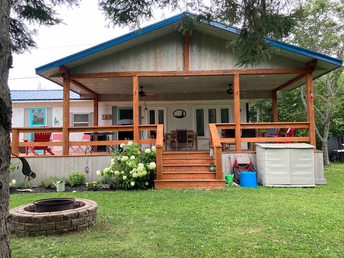 En este alojamiento se respira tranquilidad: ¡relájate con toda la familia! Cabaña 4 Seasons en la bahía. Capacidad para 6 personas: el dormitorio principal tiene una cama tamaño king, el segundo dormitorio tiene una cama tamaño queen y un sofá cama tamaño queen en la sala de estar. - ¡Bañera de hidromasaje recién instalada y ducha al aire libre! - Pesca en hielo y paseos con raquetas de nieve en invierno. - Excavación de almejas quahog, ¡y sí, puedes comértelas! - ¡Pesca de lubinas justo al lado de la terraza trasera! - Surf de remo y kayak disponibles. - Hermosos amaneceres - Hamaca y columpio en el porche. - Aire acondicionado - Chimenea de leña.