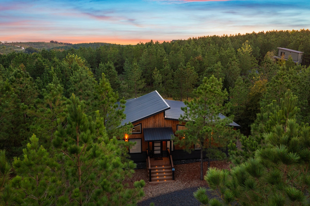 • "Ritz-Carlton of the Woods" - Escapada aislada en el bosque de Broken Bow • Duchas con efecto de lluvia y bañeras profundas “Mejor que los hoteles de 5 estrellas” • Jacuzzi bajo las estrellas con vida silvestre (ciervos, armadillos, murciélagos) • Más de 2 acres privados “como entrar en un sueño” • Fogata, parrilla a gas y kit de s'mores de cortesía • 2 suites King con comodidad “Dormir como bebés” • Cocina gourmet y electrodomésticos de primera calidad • Carga de vehículos eléctricos • Se admiten mascotas • Capacidad para 4-8 personas