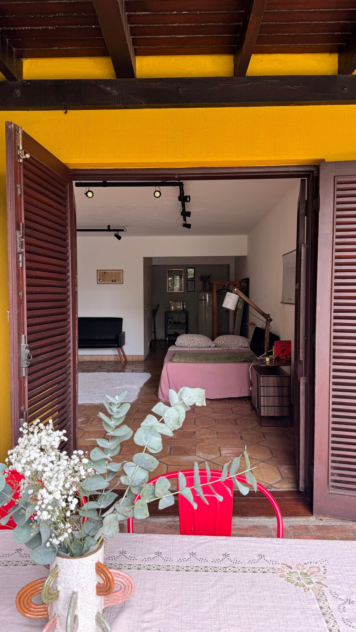 La casita está en la parte trasera de la casa y la entrada es independiente. Cuido el espacio con cariño para que esté siempre limpio, funcional y organizado. Valoro la privacidad del huésped, pero estaré disponible para ayudarlo. Soy artista plástica y de vez en cuando abro el garaje para exponer mi trabajo. Llevo 37 años viviendo en esta calle, a pesar de estar a pocos metros del bullicio de la Villa, es una calle tranquila, arbolada y segura. De todos modos, no podrías elegir un mejor lugar para alojarte en Vila