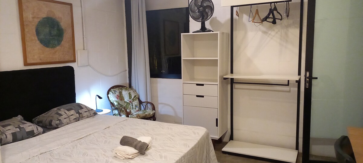 Encantador estudio con patio y cocina al aire libre, ubicado en el corazón de Brooklin, cerca de la avenida Engenheiro Luís Carlos Berrini y el aeropuerto de Congonhas, a solo 7 minutos a pie de la estación de metro Campo Belo. Características principales: - Amplia habitación con cama tamaño queen - Internet wifi de alta velocidad - Espacio de trabajo (escritorio y silla de oficina) - Patio privado y cubierto - Cocina exterior privada y cubierta - Smart TV de 40"