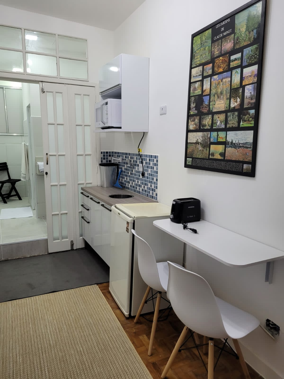 Estudio amueblado y recién reformado, con cocina y baño privados. El estudio está bien ventilado, con grandes ventanales en la sala de estar y la cocina. El estudio está ubicado en Pacaembu, un barrio muy tranquilo y arbolado, pero muy cerca de la Av. Paulista (aprox. 900 m). Está cerca de la Av. Angélica (400 m), donde hay una gran variedad de comercios. Hay un gran patio, de uso compartido.