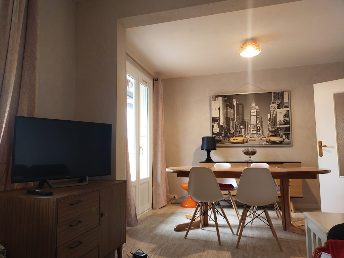 Apartamento de 33m2, que apreciarás por el distrito y la calma. Perfecto para parejas y familias. Cerca del tranvía. Apartamento renovado y para no fumadores, con capacidad para 4 viajeros. 1 cama (140 cm) y un pequeño sofá que se puede convertir en una cama (132 cm). Cerca del supermercado y la panadería (100 m) Té, café disponible Acceso a la piscina del 15 de junio al 15 de septiembre. Bienvenido a nuestra casa :)