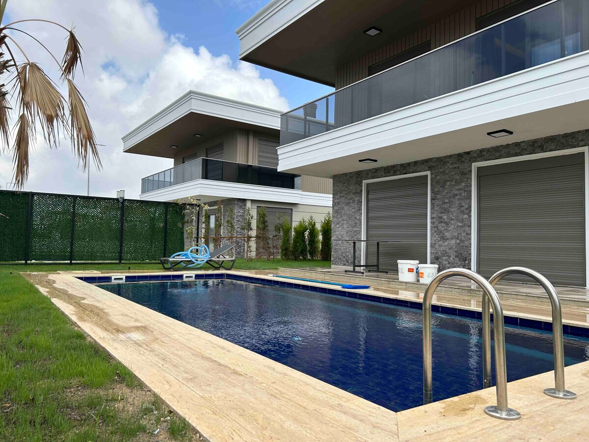 Una villa limpia de nueva construcción con una tranquila piscina privada en una ubicación céntrica. Nuestra villa se encuentra en la zona más prestigiosa de Antalya, a solo 900 m de Land of Legends. Tiene 6 dormitorios, 6 baños, con capacidad para 12 personas, cocina americana y salón. A solo 400 m de tiendas y restaurantes, a 3,4 km de la playa de Kadriye, a 26 km del aeropuerto y a 35 km del centro de la ciudad. Disfrutá de una estadía única en el Airbnb más cercano a The Land of Legends, perfecto para familias y grupos.