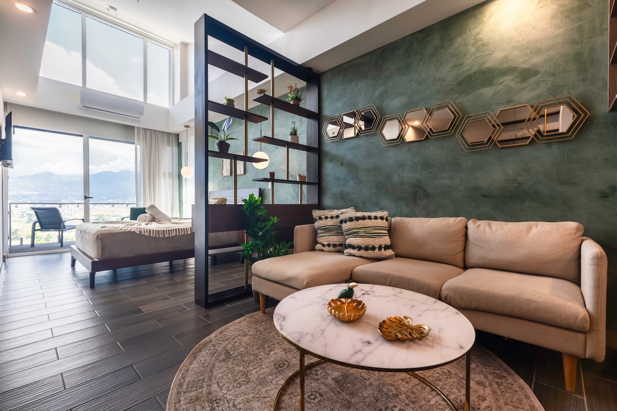 CR Stays Welcomes you to this fully-equipped studio just 4 miles from Juan Santamaría Airport. Enjoy breathtaking views of the Escazú mountains, a king bed, queen sofa bed, fast Wi-Fi, and air conditioning—ideal for 4 guests. The building boasts a gym, pool, BBQ terrace, private cinema, and meeting rooms. Minutes from Plaza Real Cariari’s shops and restaurants, and located in a prime business hub. 24/7 security for a safe, stylish, and comfortable stay.