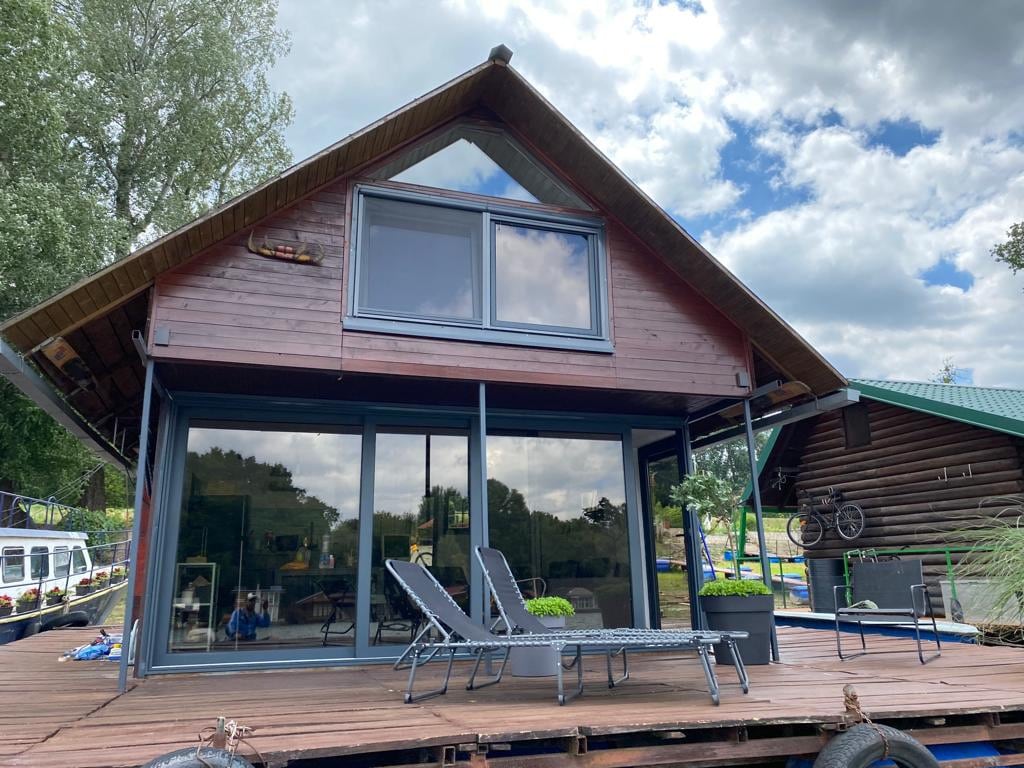Casa flotante de lujo en el río Sava. Ambiente cálido y tranquilo con decoración de madera, limpio y lleno de luz natural con la increíble vista y la maravillosa naturaleza.5 minutos a pie del lago Ada Ciganlija, 10 minutos en coche del centro de la ciudad, 25 minutos en coche del aeropuerto. Hay muchos restaurantes cercanos.Camino de entrada local a la casa. ¡Estacionamiento gratuito para nuestros huéspedes! En el idilio invernal también puedes disfrutar con nosotros, porque estamos súper equipados con calefactores, por lo que es muy cálido y acogedor.