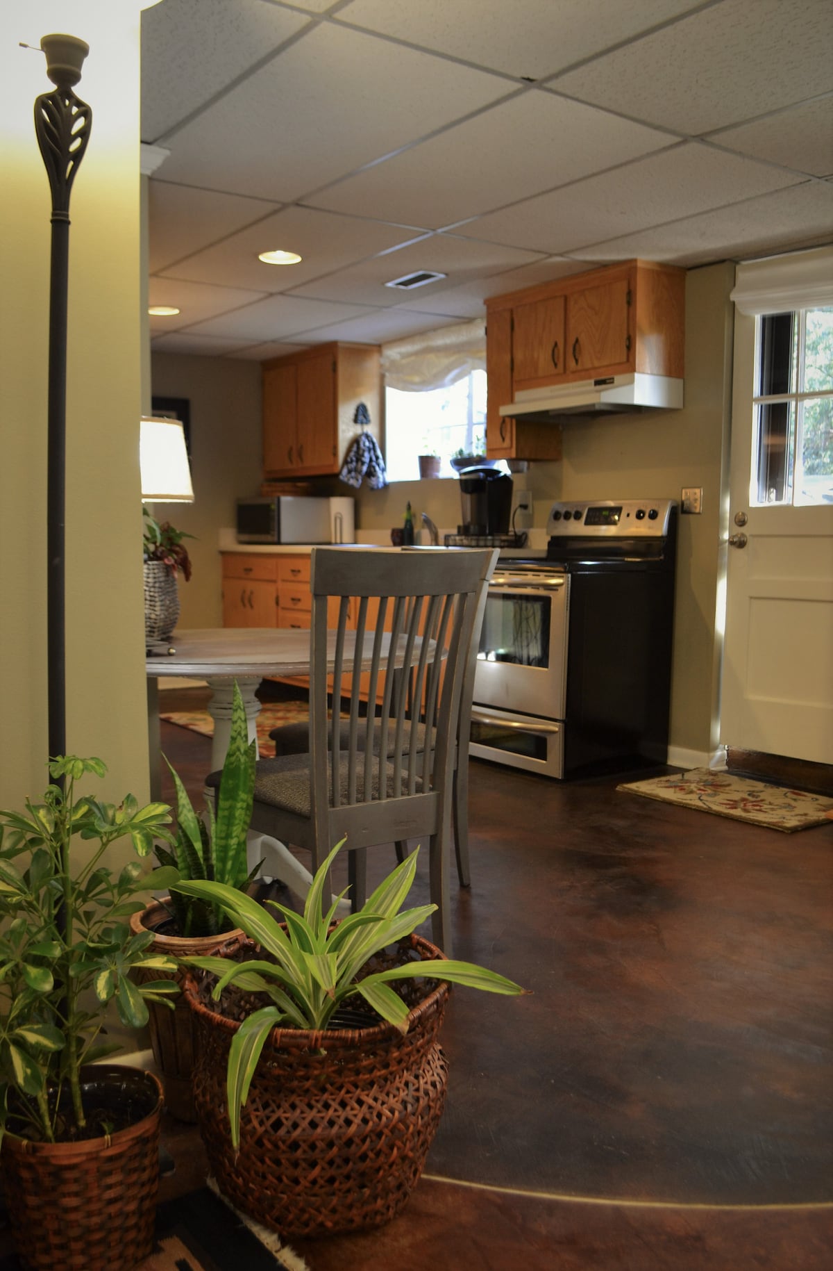 Cómodo apartamento con fácil aparcamiento y entrada privada. El espacio es perfecto para una sola persona o 2 adultos y un niño o dos si los tienes. Un acogedor escondite en un barrio tranquilo, con un pequeño patio, jardín y arroyo más allá. A solo 20 minutos del centro de la ciudad y a 15 minutos de Vanderbilt. Cama tamaño queen supercómoda, además de dos opciones adicionales para dormir: una otomana en el dormitorio y un sofá cama de tamaño doble en la sala de estar. Cafetera Keurig y dispensador de agua embotellada. Aparcamiento cubierto a tu puerta.