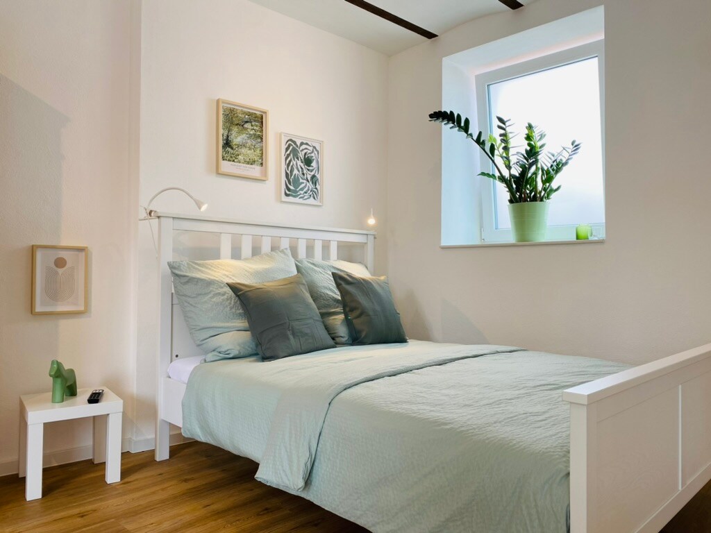 Unsere gemütliche, helle Dachwohnung ist ein innenstadtnaher Ort (ca. 5 km bis Zentrum) der Entspannung . Die separate Wohnung besteht aus Schlafzimmer, Wohn-Essbereich (Zweisitzer, TV, Sitzgruppe) sowie einem eigenen kleinen Duschbad mit Toilette sowie einem schönen Garten mit Sitzecke. Prüfungsvorbereitungen sind ohne Probleme möglich, da es sehr ruhig bei uns ist. Fortbildungsstätten befinden sich in der Nähe: Ergotherapie, Hörgeräteakustiker ca 5 Min.,Uni 15 Min. Messegelände ca.7 Min.