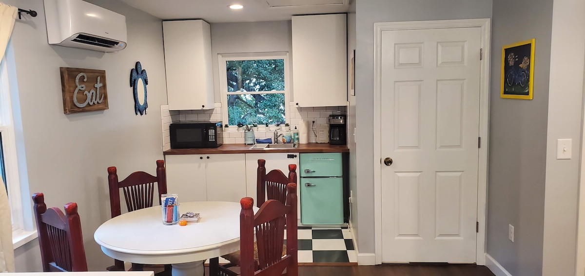Newly Remodeled stylish and private studio suite with queen bed, bathroom, living/dining/work area, kitchenette (Dry), and shared laundry in the trendy Old Seminole Heights neighborhood. With an 83/100 walk score its easy to visit bars, restaurants, diners, bakeries, and quaint shops, or stroll the tree-lined streets of 100+ year old houses. This spot is perfect for the Tampa explorer with easy access to downtown. Free street parking, free WiFi, free shared laundry (in adjacent space).
