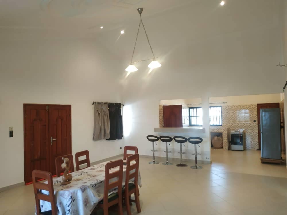 Ofrecemos este hermoso apartamento en la ciudad de Abomey-Calavi, no muy lejos de la capital económica Cotonú. Está cerca del mayor centro comercial Super U. y a pocos minutos de la Venecia de África (Ganvié). Es un apartamento moderno con aire acondicionado (amplio salón y 2 dormitorios independientes) funcional con una cocina totalmente equipada (cocina – horno de gas, etc.). La piscina completamente privada en la azotea es perfecta para su relajación y será exclusiva para usted.