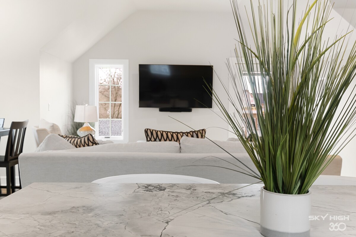 ¿Te gustan los hoteles de 5 estrellas? Reserva este. Nueva casa personalizada en Main Street. Lujo espacioso Galería de arte original. 2 áreas de trabajo, internet de alta velocidad, ubicación extremadamente tranquila. A 0,3 millas a pie de Crystal Bridges desde esta impresionante unidad de 2000 pies con 3 dormitorios grandes y 3 baños completos en el segundo piso. A 1/2 milla de la plaza del centro de la ciudad. A 0,1 del famoso sendero Slaughter Pen. Placeres como ropa de cama supersuave, albornoces de felpa, productos de baño de spa y cocina amueblada y cesta de bienvenida. Persianas opacas. Amplio estacionamiento. Reserva ahora