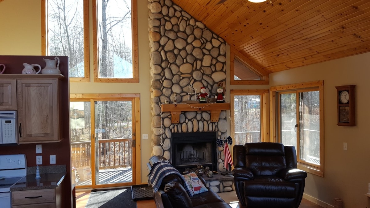 Relajate y jugá en la acogedora cabaña de madera de Betsie River. Nos esforzamos para que tu estadía sea la mejor. La cabaña se encuentra en el río Betsie en Thompsonville, MI, a 5 millas de Crystal Mountain Ski & Golf & Spa Resort. A 30 minutos de Frankfort/Lk Michigan, Traverse City , Beulah/Crystal Lake y a unos 20 minutos de Interlochen Music Camp. Los lagos y el río Betsie rodean la zona, lo que hace que la pesca y la navegación sean fácilmente accesibles. El BRLC es una propiedad para no fumadores con un generador de casa completo/nuevo equipo para bebés a la vista.