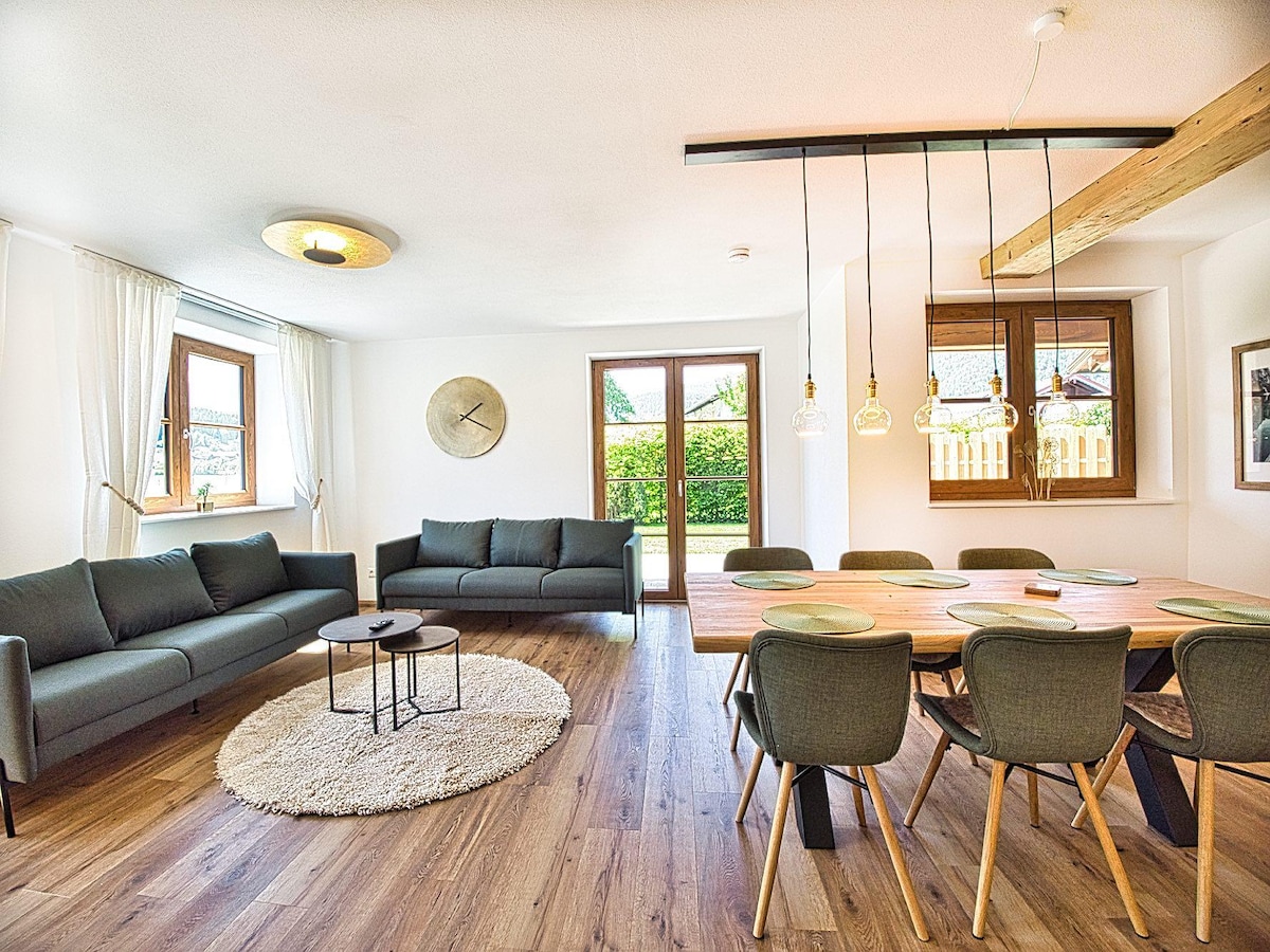Pase sus vacaciones en nuestra idílica casa de campo, lejos del ajetreo habitual, en un impresionante paisaje de montaña a 950 metros de altitud. Queremos ofrecer a los entusiastas del aire libre y a los amantes del deporte el alojamiento perfecto. Nuestra ubicación en Roßfeldstraße es el punto de partida ideal para innumerables excursiones de senderismo, ciclismo y esquí. El apartamento de vacaciones recién renovado y lleno de luz al estilo alpino se ha amueblado con mucha atención al detalle y acogedores elementos de madera.