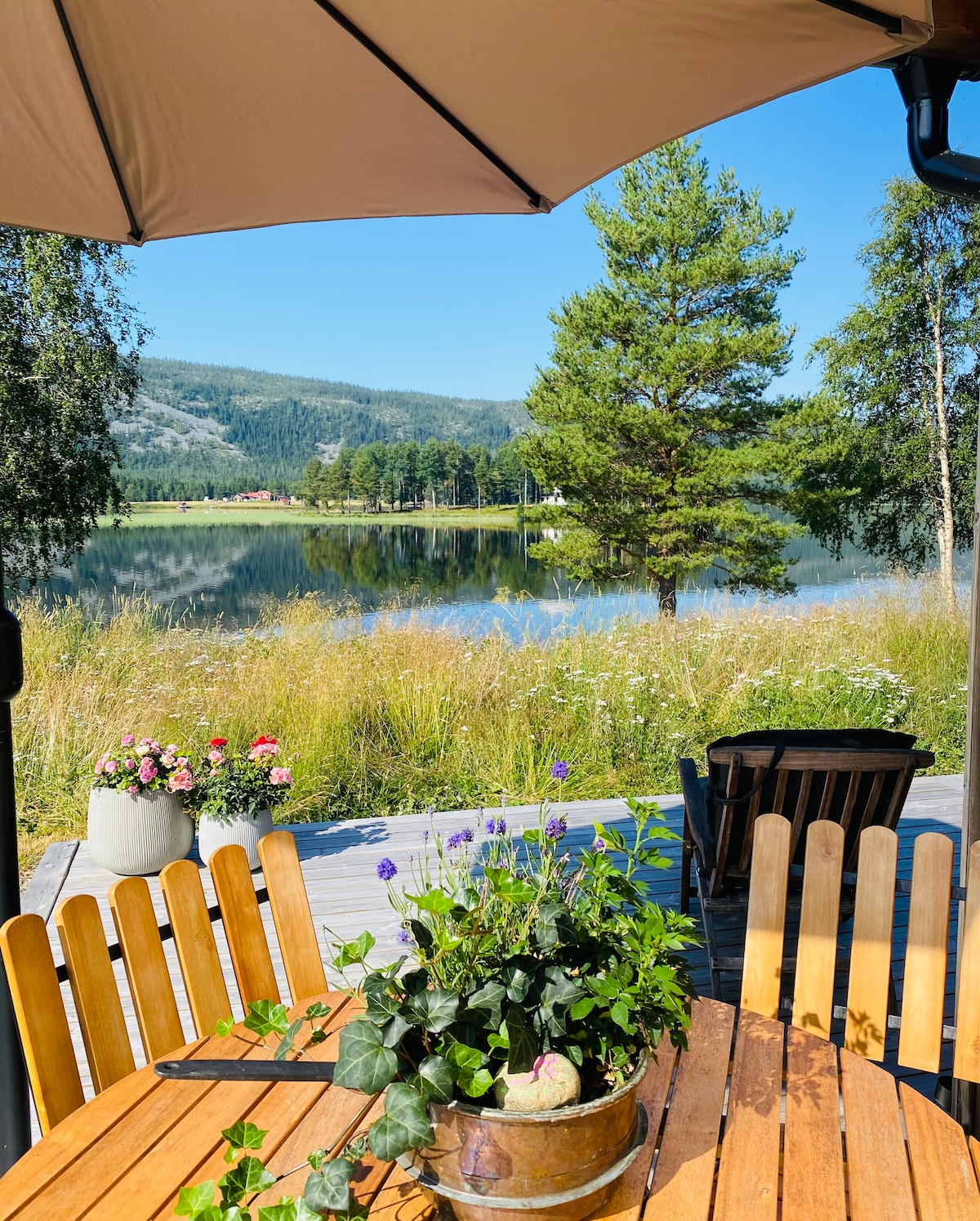Vemdalen, la joya de la corona de Suecia, ofrece una exquisita cocina y paisajes pintorescos. Ubicada en su belleza prístina se encuentra nuestra casa de madera construida a mano, que proporciona tranquilidad y vistas impresionantes. Con el lago a solo 15 metros de distancia, cada momento promete serenidad. Relájate en la sauna, date un chapuzón en el lago, disfruta de los placeres del verano: golf, recolección de bayas, remo, ciclismo, pesca o simplemente disfruta de una copa de vino en medio del esplendor de la naturaleza. ¡Te damos la bienvenida a un lugar donde cada día es una celebración!
