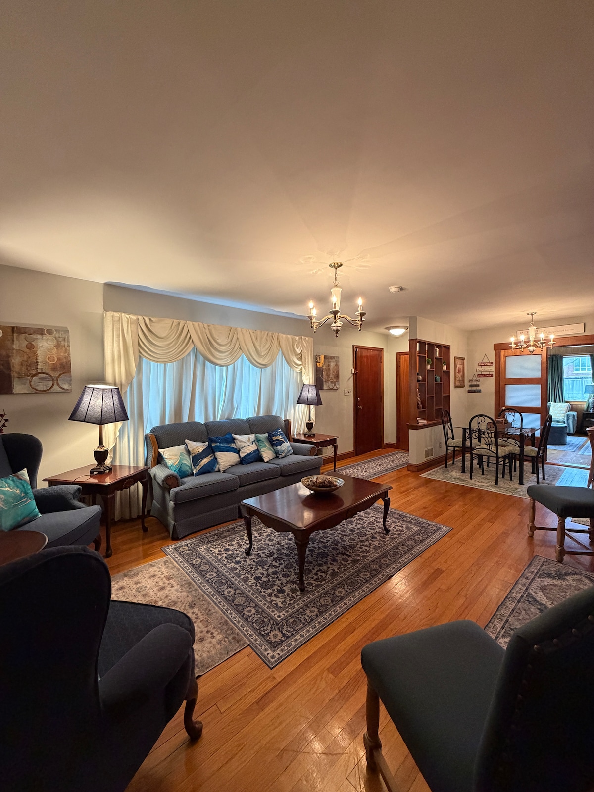 Unidad de dos habitaciones en la planta baja. Sin escalones. Entrada separada de la casa principal. Entrada privada y estacionamiento. Hay una habitación de entrada con una cama doble, cama individual, sofá y nevera completa. En una sala de estar separada, hay una cama tamaño queen, TV, baño, escritorio, mesa, microondas, horno de convección, freidora de aire, chimenea de gas. No hay horno. En el exterior hay un gran área para usar la parrilla de gas exterior, la mesa de picnic y el fogón. Se permiten perros y deben mantenerse con correa cuando estén afuera. Por favor, NO SE ADMITEN GATOS. El propietario es alérgico.