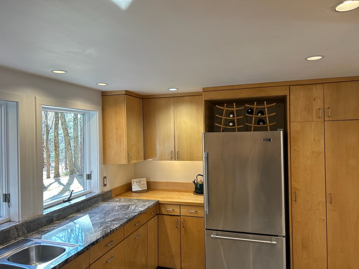 Finca privada de 20 acres en Berkshires diseñada por el aclamado arquitecto y autor Norton Juster. Un exclusivo refugio de 4 dormitorios, con vistas a la montaña desde todas las habitaciones, techos de catedral, chimeneas acogedoras, elegantes salas de estar y chimenea al aire libre. Es el lugar perfecto para relajarse. Relájate en el jacuzzi o en la sauna después de un día de esquí en Jiminy Peak o Bousquet. Recientemente renovado con muebles de alta gama y cocina de chef. Una mezcla perfecta de aventura y tranquilidad te espera. ¡Reserva hoy tu escapada a la montaña!