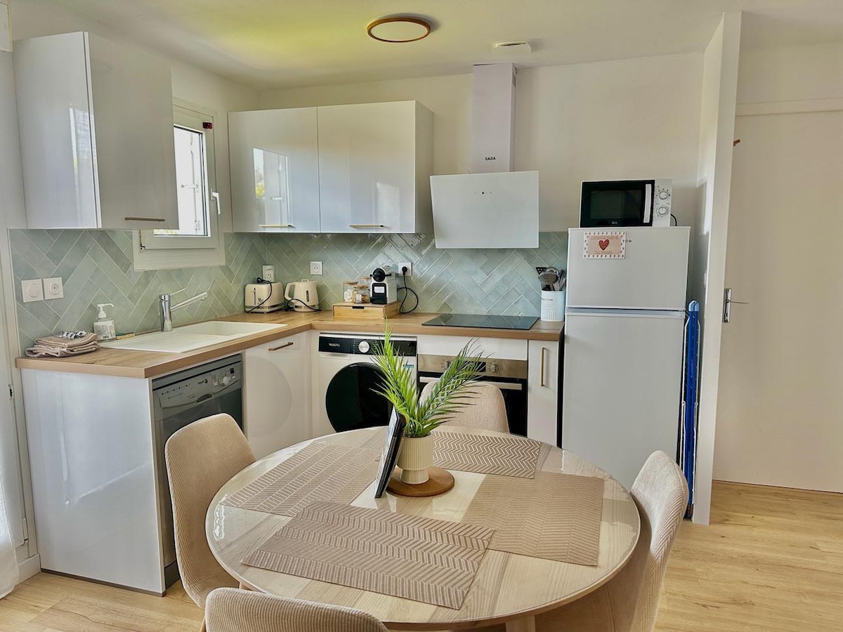 El alojamiento FRENTE AL MAR se renovó por completo en la primavera de 2020: aislamiento-electricidad - pinturas -parquet flotante 12 mm roble rubio - calefacción - cuarto de baño con ducha 1 m x 1 m-WC. Muebles nuevos (cama de 140 + ropa de cama/mesas + sillas/4 sillones + cojines + mantas/convertible de 160/mesas nido/cocina equipada + horno de pirólisis +placa de inducción + nevera-congelador + cafetera + tostadora + utensilios de cocina... Decoración marina cuidada/limpieza asegurada