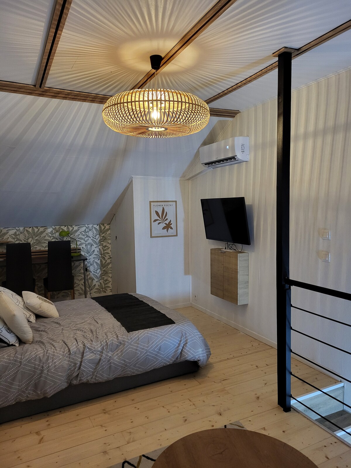 Bienvenue dans votre havre de paix perché au dernier étage. Cet appartement vous offre une bulle de douceur, à deux pas de tout. Baigné de lumière naturelle toute la journée, il séduit par ses matières chaleureuses et son atmosphère intimiste et apaisante. Que vous soyez en escapade romantique ou en déplacement professionnel, vous y trouverez exactement ce qu'il faut pour vous ressourcer. Simplifiez-vous la vie dans ce logement paisible et central.