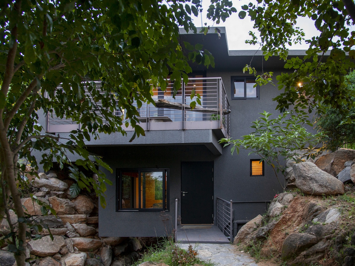 Hideout is a hyper-styled cabin perched over a seasonal rivulet, just 2 hours from Bangalore. The bedroom is tucked between rocks; a most surprising sleeping space. A private balcony and an outdoor sit-out and a fire pit make the space entirely your own. Designed for those who value genuine privacy and seclusion. No crowds, no noise just you and the landscape. All meals farm-to-fork included. Shared pool on property. Travelling with others? We have 4 more properties on the same farm.