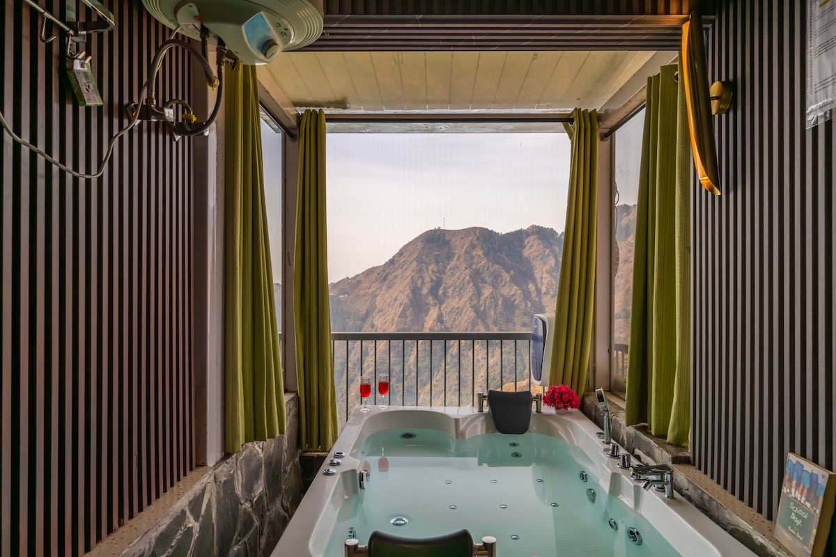 Escápate a esta lujosa suite de 1 dormitorio y sala de estar con un amplio balcón y jacuzzi privado, con impresionantes vistas a la montaña y al valle. A solo 13 km de Mussoorie y Dhanaulti, ofrece una escapada pacífica, lejos de las multitudes. Una mezcla perfecta de lujo y comodidad, con descuentos exclusivos en emocionantes actividades de aventura como Giant Swing, Go Karting, paseos en todoterreno, una tirolina de 600 metros, caída gratuita, etc. Es el destino ideal para la relajación y la aventura, todo en una estancia inolvidable.