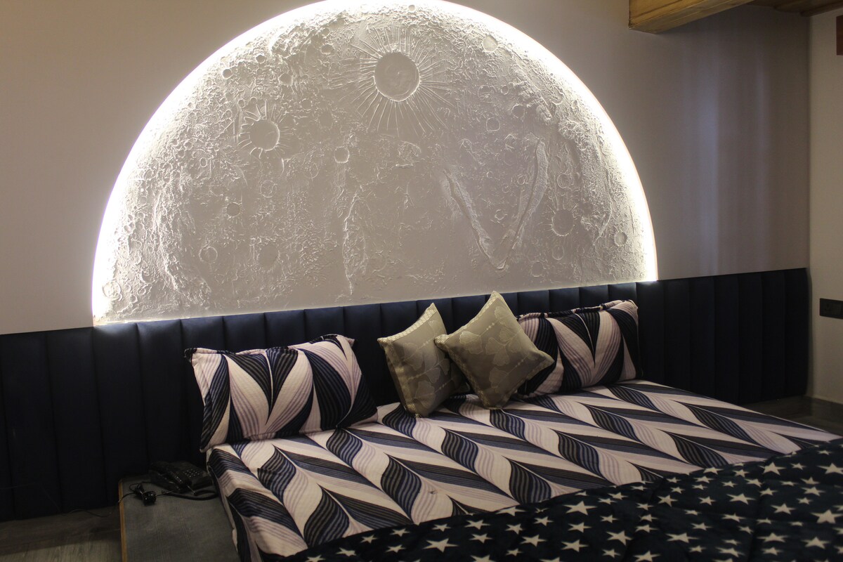 Te damos la bienvenida a Zenith Bliss de Advays, un dúplex penthouse a medida donde los sueños de montaña toman forma. Ubicado sobre Advaya Stays Sunderkhal, este exclusivo refugio ofrece vistas panorámicas de colinas ondulantes, cielos estrellados y lujo tranquilo en todo su esplendor. Relajate en tu jacuzzi privado mientras el sol se esconde detrás de los picos color esmeralda y, luego, disfrutá de una cena a la luz de las velas bajo un cielo iluminado por hadas. Diseñado para deleitar, Zenith Bliss es la combinación perfecta de romance, rejuvenecimiento y hospitalidad refinada.