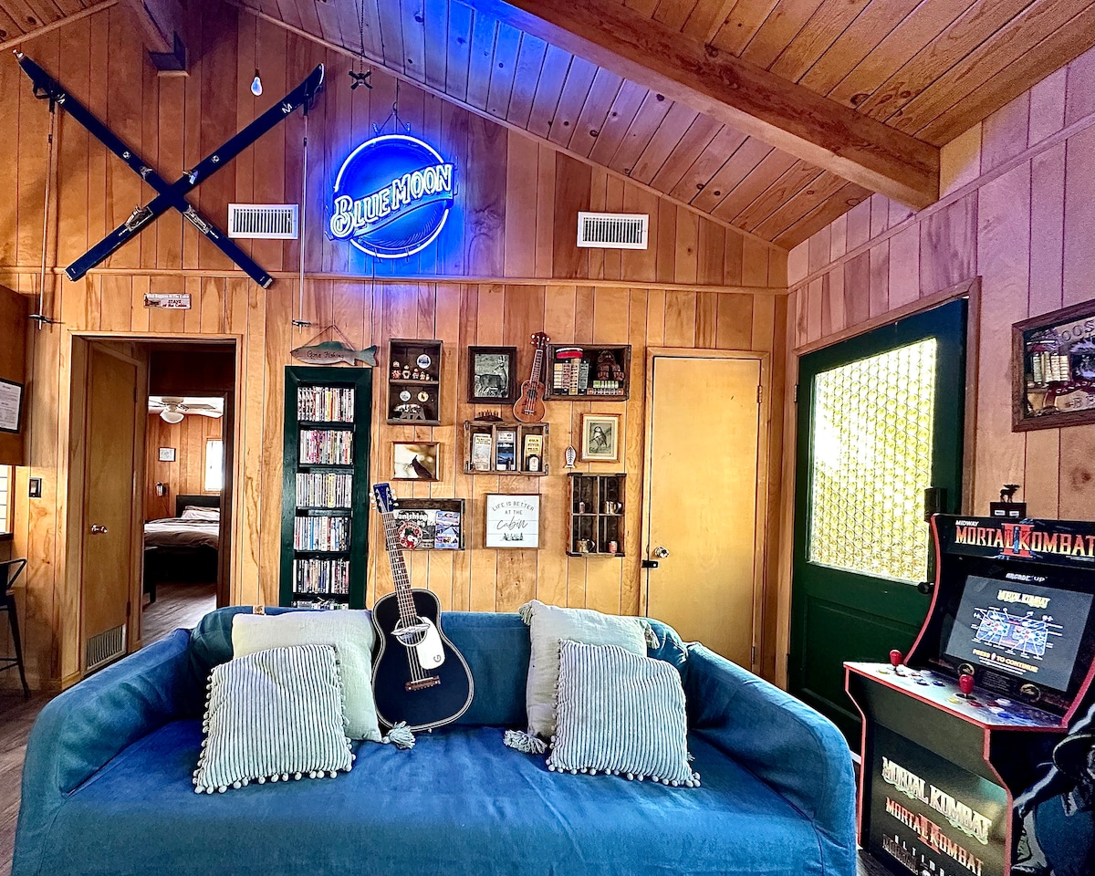 Escape to this recently refreshed midcentury cabin minutes from the village, slopes, trails and the lake, with all the high end amenities you need for a perfect mountain getaway. Start off with coffee on the front porch, watching squirrels and bunnies, spend the day swimming, skiing or hiking, come home and do some work on high speed wifi with an extra monitor before you grill, hit the hot tub, watch a movie on an extra deep couch, and crash onto a Heavenly mattress. It’s a 14/10 kinda day.