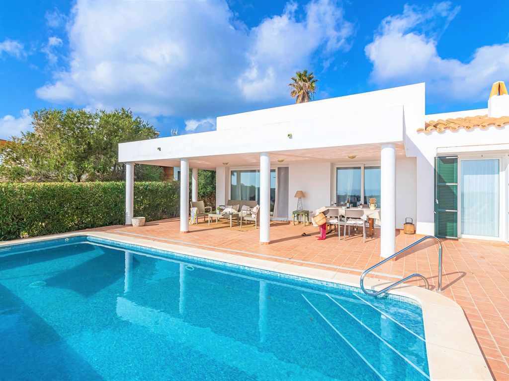 Una de las mejores vistas al mar, casa en un acantilado con jardín directamente sobre el mar. A la izquierda, la vista a la playa y a la derecha la entrada de la bahía. Directamente en la ciudad de Cala en Porter, todavía increíble vista del mar virgen, acantilados y bahías.