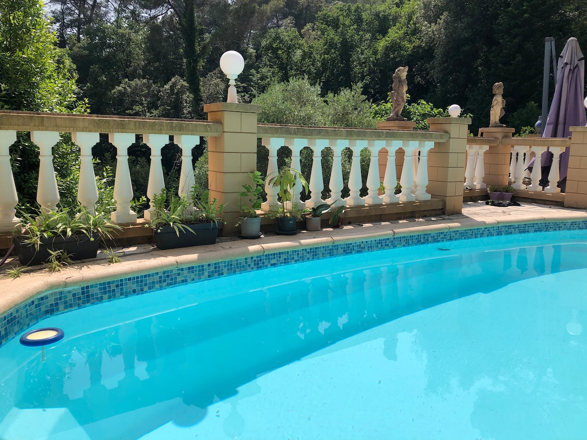 Petit STUDIO très bien équipée avec entrée et parking privé dans une grande Propriété avec piscine et jacuzzi chauffés du 10 avril au 30 octobre . La piscine extérieur et jacuzzi ainsi que le jardin sont partagés mais assez grand pour profiter chacun son espace de tranquillité . Je vis dans la bastide principale . Un Havre de Paix entouré d oliviers centenaires . A 35 minutes de l aéroport de Nice et divers villages provençaux et 14km de Cannes . Tele grand écran /abonnement Netflix